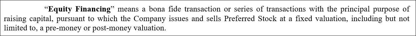 - Upon the occurrence of an Equity Financing, the investor receives shares of the company’s preferred stock.
