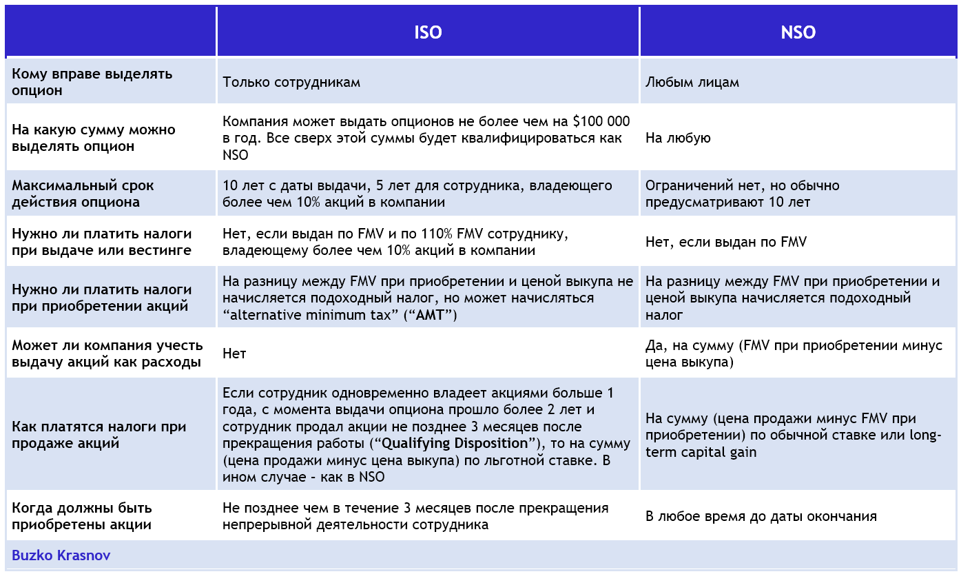 ISO (Incentive Stock Option) и NSO (Non-qualified Stock Option)