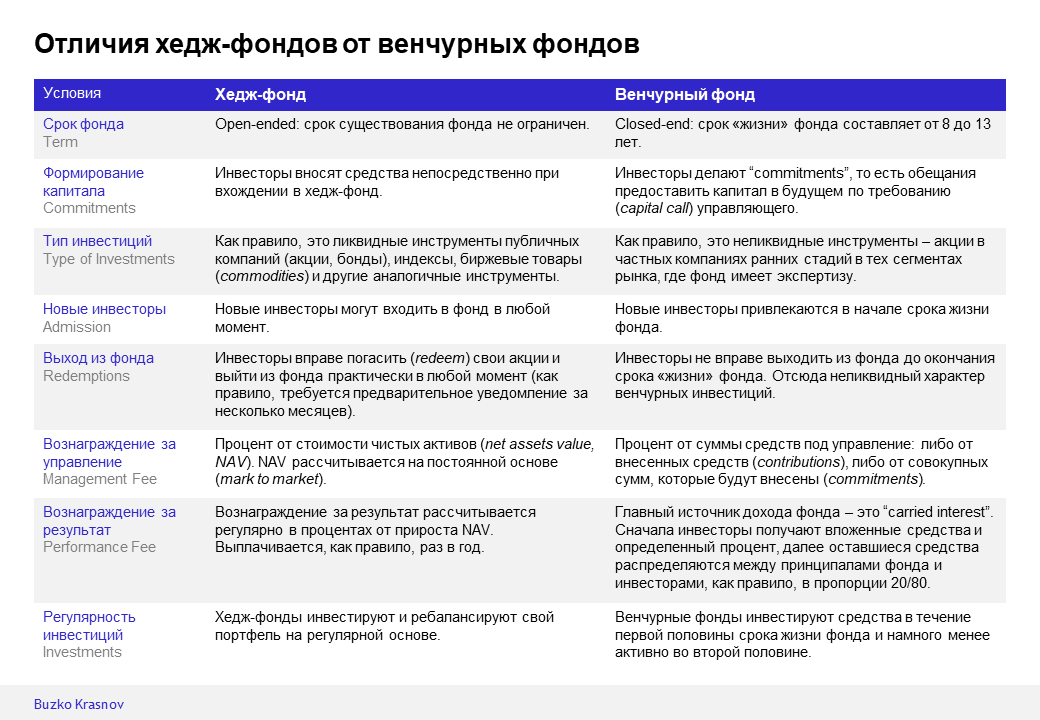 Кстати, венчурные фонды принципиально отличаются от хедж-фондов.