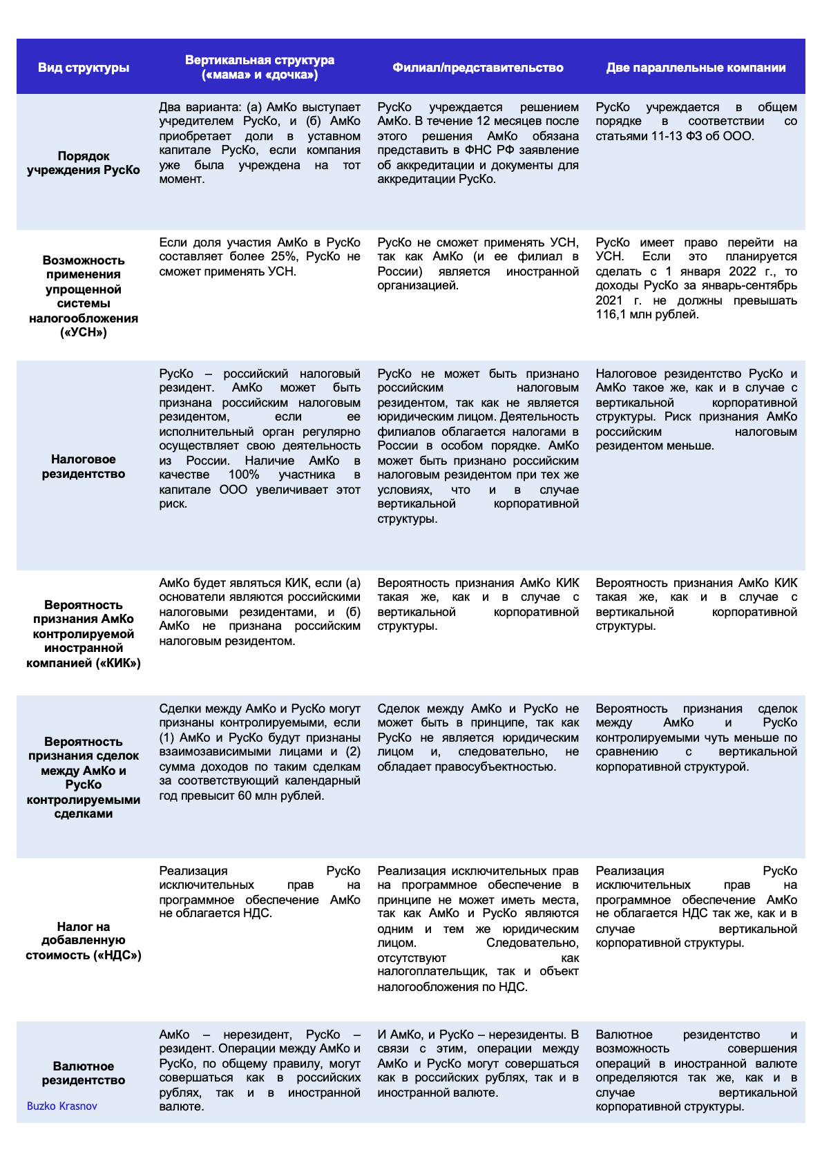 Стоит отметить, что предложенная схема юридического присутствия АмКо на российском рынке лишь снижает, но не исключает вовсе связанные с таким присутствием налоговые риски.