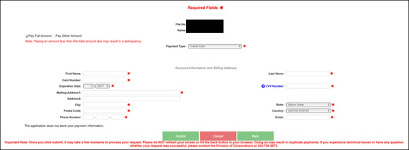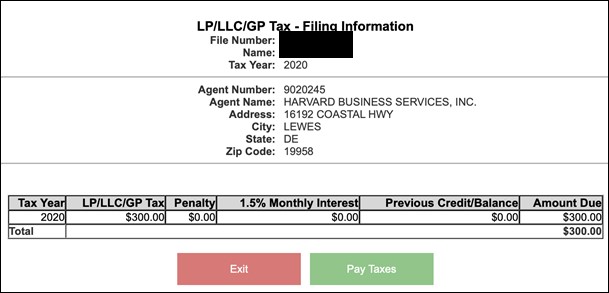 Franchise tax – это, по своей сути, плата, взимаемая штатом Делавэр за право владеть компанией на территории штата. Срок уплаты franchise tax для LLC – до 1 июня каждого календарного года. Налог уплачивается через сайт Отдела корпораций штата Делавэр.