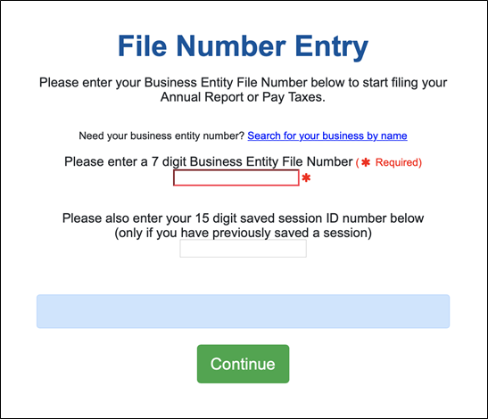 2. Введите регистрационный номер компании (Business Entity File Number).