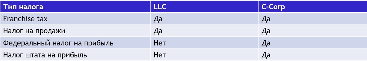 Однако C-Corp, в свою очередь, превосходит LLC в следующих аспектах: